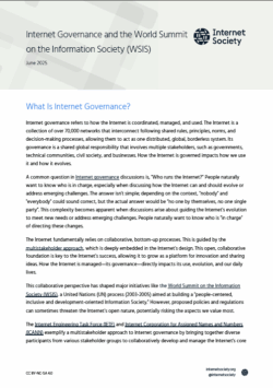 This collaborative perspective has shaped major initiatives like the World Summit on the Information Society (WSIS), a United Nations (UN) process (2003-2005) aimed at building a “people-centered, inclusive and development-oriented Information Society.” However, proposed policies and regulations can sometimes threaten the Internet’s open nature, potentially risking the aspects we value most.